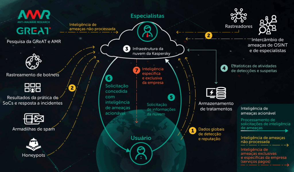 Ao permitir que sua rede se incorpore ao KSN, dados anônimos alimentam a rede central de inteligência contra ataques. Esses dados são analisados por nossos especialistas humanos e de por inteligência artificial,